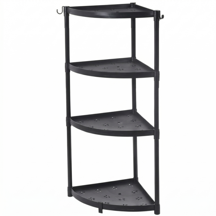 Características: • 4 niveles amplios de almacenamiento • Diseño esquinero que ahorra espacio • Material resistente y duradero • Fácil armado, sin herramientas complejas • Superficie ventilada (ideal para ambientes húmedos)