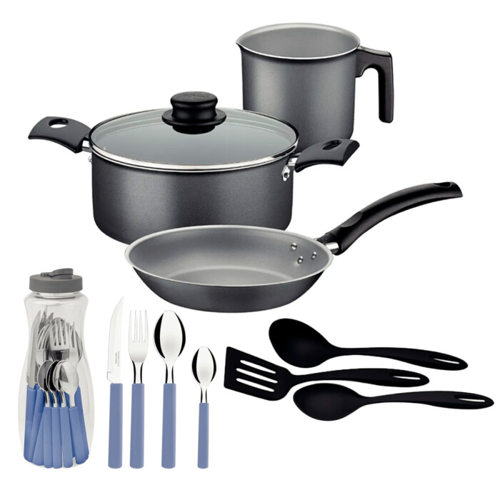 Juego Ollas Tramontina Bateria Cubiertos 22 Piezas Antiadherente