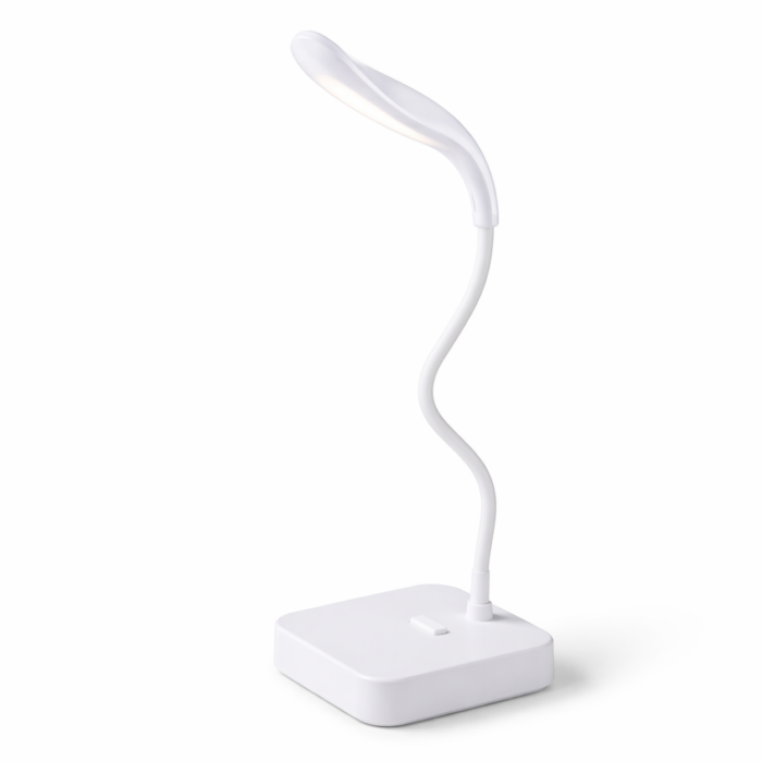 Lámpara moderna ideal para escritorio, estudio o mesa de luz. Su diseño flexible permite ajustar la dirección de la luz según la necesidad, brindando mayor comodidad para lectura, trabajo o estudio.