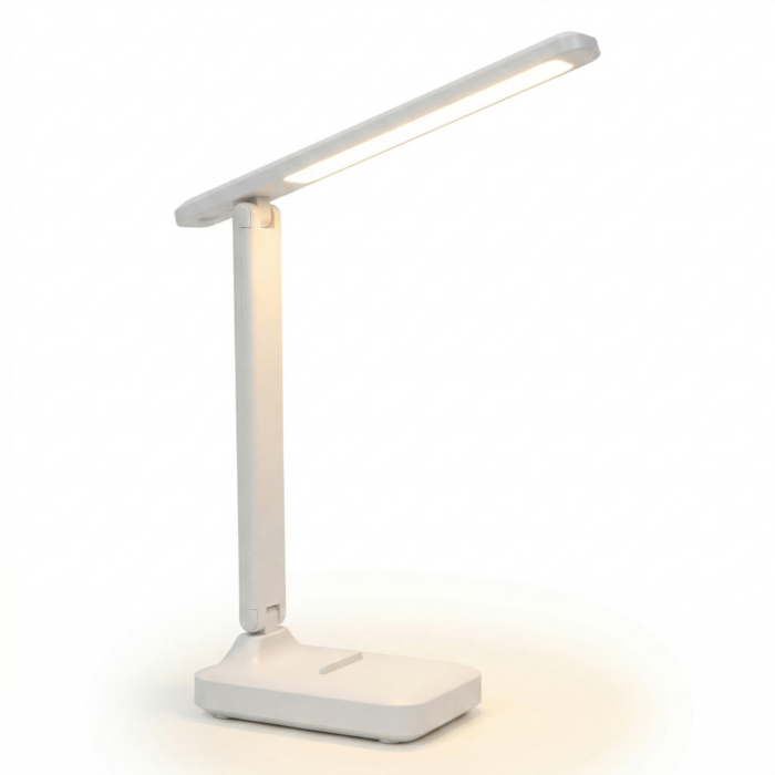 Lámpara de escritorio moderna y funcional, ideal para estudio, trabajo o lectura. Su diseño minimalista se adapta a cualquier espacio, brindando una iluminación eficiente y cómoda para la vista.